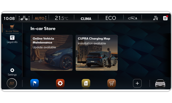 Drive freely with a new infotainment app that integrates the CUPRA Charging* service into your vehicle's ecosystem. Download the My CUPRA app to get the CUPRA Charging Map.